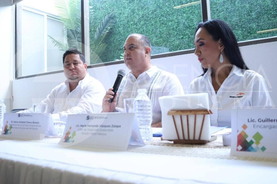 Por otro lado, y con el objetivo de establecer un compromiso conjunto en la protección y defensa de los derechos humanos, el ombudsperson de Michoacán, Marco Antonio Tinoco Álvarez signó convenios de colaboración con los presidentes municipales de Lázaro Cárdenas, Manuel Esquivel Bejarano y de Arteaga, Wendolyn Alejandra Avellaneda Torres, así como con la Jefa de Desarrollo Sostenible de Arcelor Mittal, María Fernanda Vázquez Zalapa, del colectivo Mujeres de Acero.