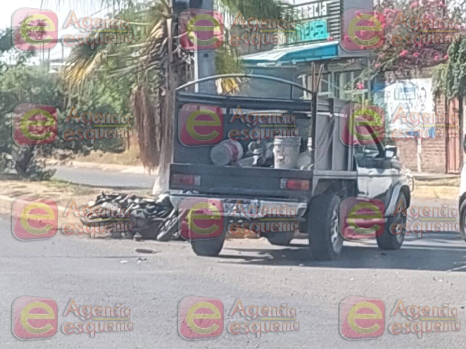 Apatzingán, Michoacán, 2 de abril del 2023.- Un hombre resultó gravemente herido al chocar su motocicleta contra una camioneta.