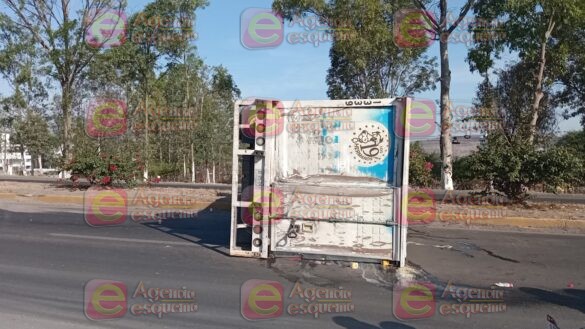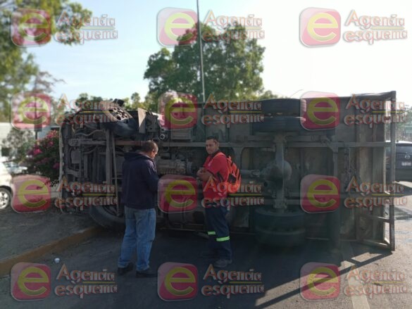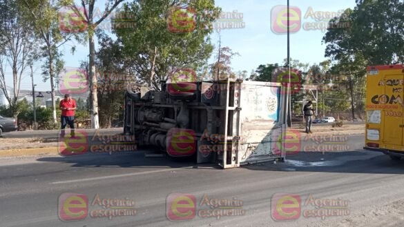 Morelia, Michoacán a 21 de abril del 2023. Un camión que trasladaba productos lácteos se volcó en la Avenida Madero Oriente dejando solo daños materiales.
