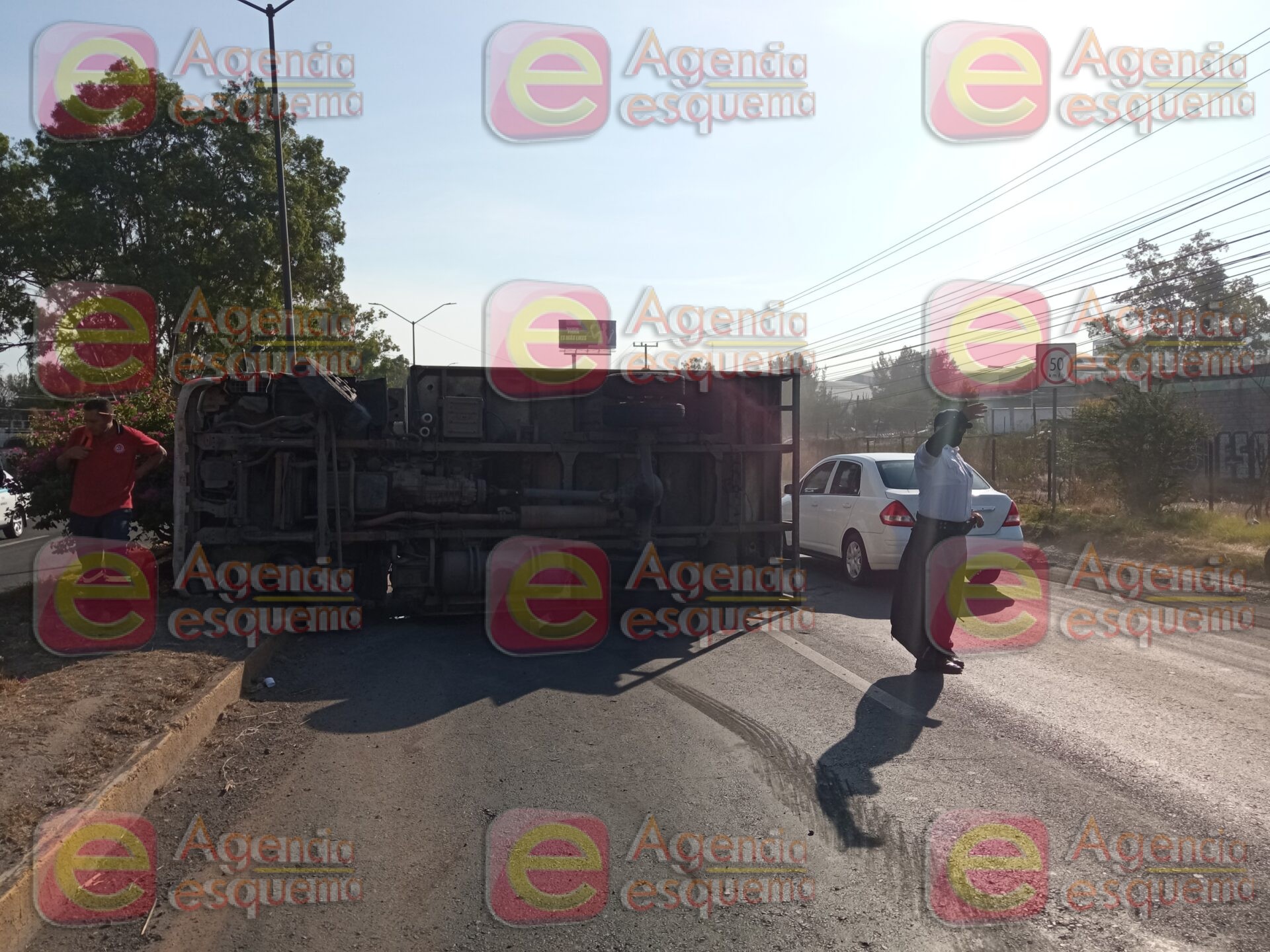 Morelia, Michoacán a 21 de abril del 2023. Un camión que trasladaba productos lácteos se volcó en la Avenida Madero Oriente dejando solo daños materiales.