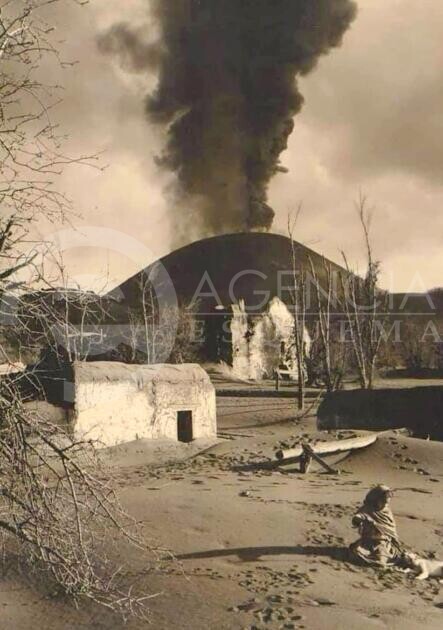 Así, destaca que dos meses después del nacimiento del volcán, en abril de ese año, el poblado de Parhíkutin (lugar o ir al otro lado) o San Salvador Kúmbutsio, que contaba con 733 habitantes, queda sepultado para siempre, por una lápida negra de lava. Después sería reubicado al oriente de Uruapan, junto a la estación del ferrocarril Caltzontzin.