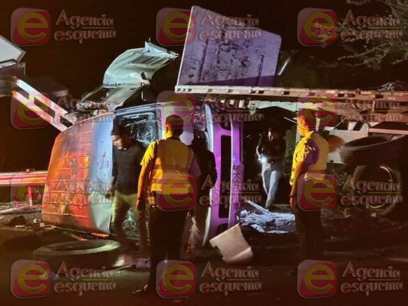 La cabina de la pesada unidad quedó totalmente destrozada y la urvan que transportaba doce pasajeros quedó volcada sobre la vía federal.