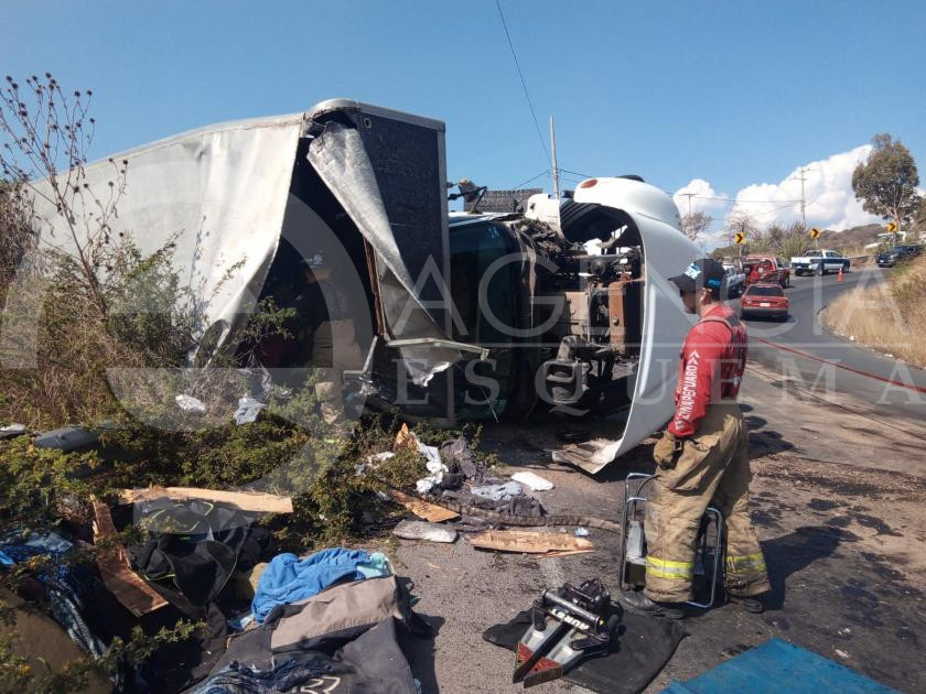 El fatal accidente se registró en las inmediaciones del kilometro 22+400, de la citada vialidad donde quedó volcado un camión International, de color blanco, con placas de circulación GP 0118 C, del vecino Estado de Guanajuato, conducido por Juan Genaro A., de 32 años.