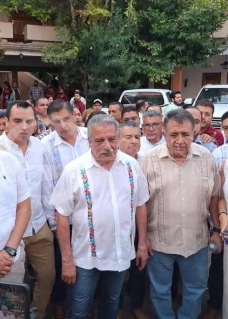 Así mismo los manifestantes golpearon en el cuerpo con una silla al ex presidente de Apatzingán y al maestro Raúl Morón, los manifestantes fueron retirados por los elementos policíacos.