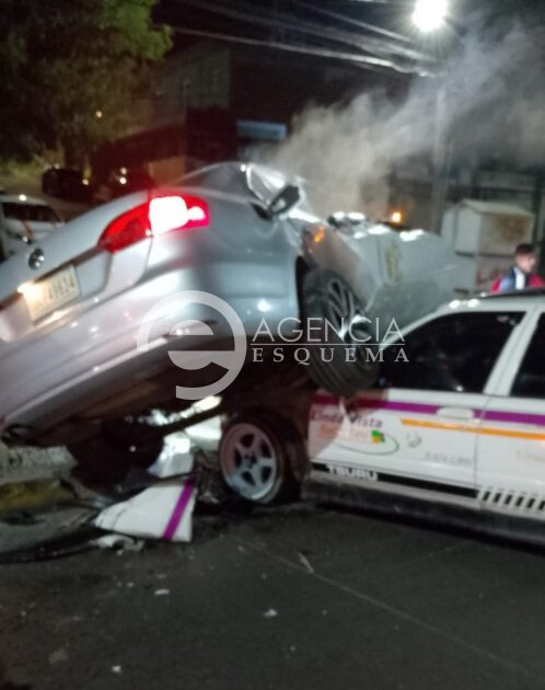 Uruapan, Michoacán, 27 de marzo de 2026.– Una persona lesionada y cuantiosas pérdidas materiales dejó un aparatoso choque entre un taxi de la organización «Lindavista» y un vehículo particular, la madrugada de este viernes sobre la calzada Benito Juárez, a un costado de la Central Camionera, en la colonia El Periodista.