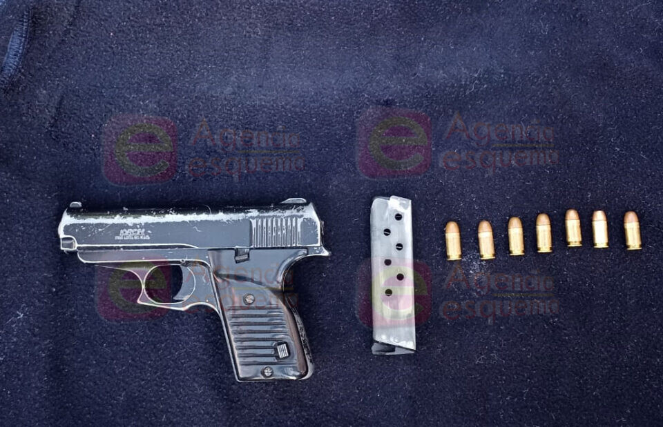 De inmediato los agentes los persiguieron y los detuvieron, encontrando en una cangurera una pistola calibre .380.