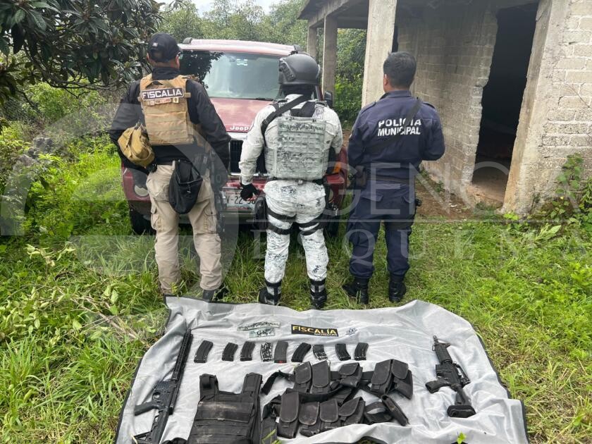 Sin embargo, al interior los representantes de la ley encontraron dos armas largas de alto poder, un chaleco antibalas, dos fornituras, 9 cargadores y 106 cartuchos útiles calibre .22.
