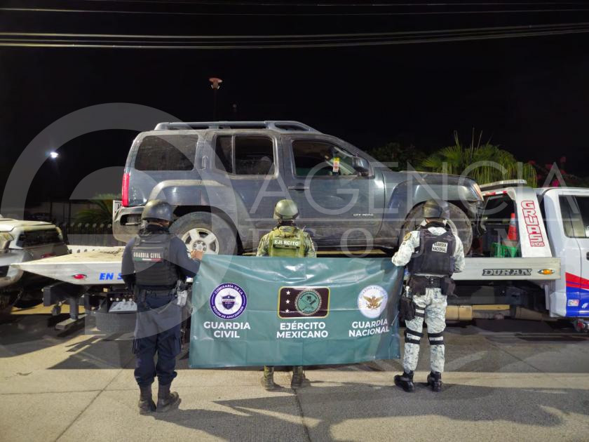 En la localidad de Santa Ana Amatlán, localizaron un vehículo todo terreno “Rzr” marca Polaris con reporte de robo, así como un arma larga calibre 5.56×45 milímetros, 60 municiones, cargadores y equipo táctico.