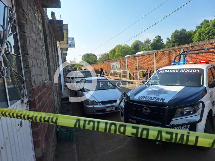 Uruapan, Michoacán, 30 de diciembre de 2025.- La mañana de este martes una mujer fue asesinada de al menos 6 balazos por fuera de un domicilio, a un costado de la Escuela Preparatoria Lázaro Cárdenas, en la colonia La Mora.