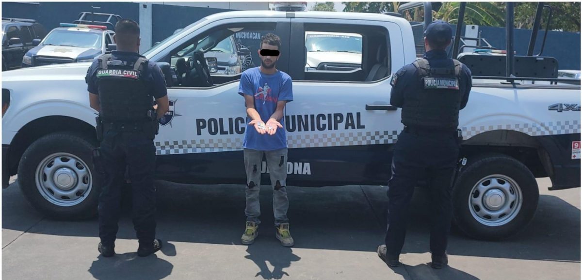 Se supo sobre la detención, que los uniformados patrullaban las calles de la colonia Lázaro Cárdenas, cuando al ir circulando por la Miguel Alemán, se percataron de la forma sospechosa de dicho sujeto que trató de evadirlos, por lo que le marcaron el alto, identificándose como Juan V. G., de 23 años de edad, con domicilio en la calle Ignacio Allende de la colonia Ángel Mendoza, de esta ciudad de Jacona.