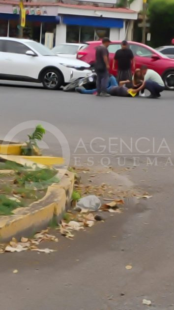 Apatzingán, Michoacán, 6 de junio de 2025.- Un motociclista que circulaba sobre la avenida José María Morelos al norte de la ciudad fue impactado por un vehículo compacto.