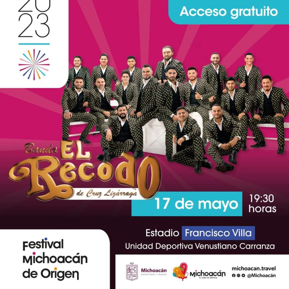 *Morelia, Michoacán, 17 de mayo de 2023.-* El Festival Michoacán de Origen cierra el ciclo de conciertos gratuitos con la Banda El Recodo, quien tocará sus grandes éxitos este miércoles en punto de las 19:30 horas, en el estadio de béisbol Francisco Villa.