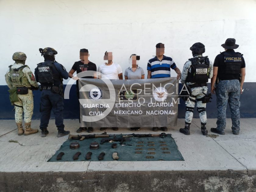 Ante ello, procedieron a marcarles el alto, y sin darles tiempo de reaccionar lograron someterlos, identificándose como Kevin S. P., de 23 años de edad, alias “El Búho”, Miguel Ángel A. Q., de 18 años, “El Cucu” y Rafael U. G., de 17 años, “El David”, los tres originarios y vecinos del municipio de Mújica, así como Mayra Betsaida C. V., “La Mayra”, originaria de Uruapan.