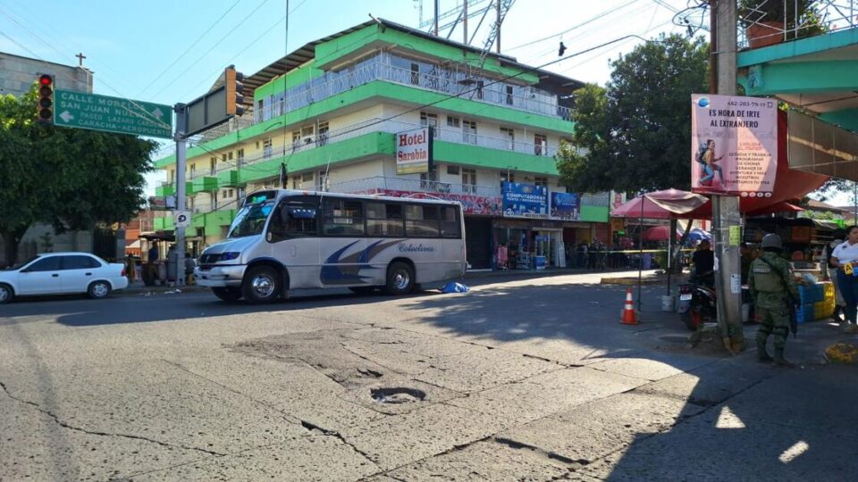 Uruapan, Michoacán, 04 de abril de 2024.- Una mujer de la tercera edad pereció al ser arrollada por un camión del servicio urbano de la línea Colectivos de Uruapan, sobre la avenida Francisco Sarabia, por fuera del templo de Cristo Rey, en la colonia Ramón Farías.
