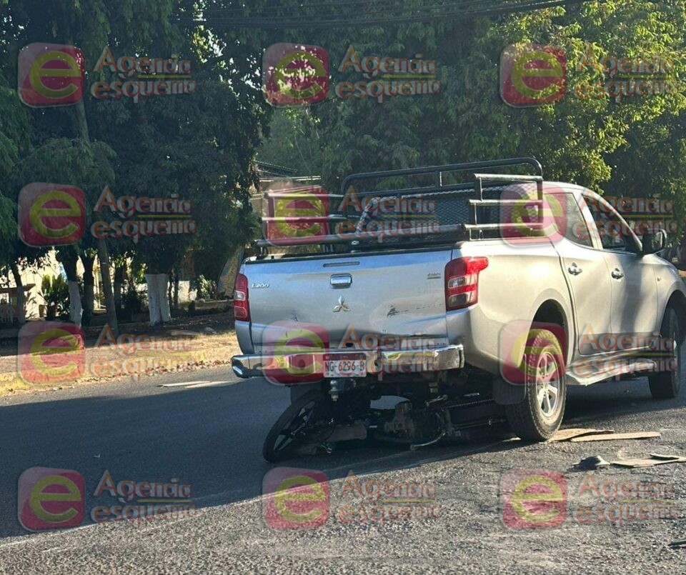 El accidente tuvo lugar la mañana de este viernes alrededor de las 09:02 horas, sobre la Avenida Lázaro Cárdenas esquina con la Avenida José María Morelos de la colonia El Varillero, la motocicleta quedó debajo de la camioneta, color gris, placas NG-6296-B del Estado de Michoacán, su conductor bajó de la unidad, para auxiliar al motociclista.