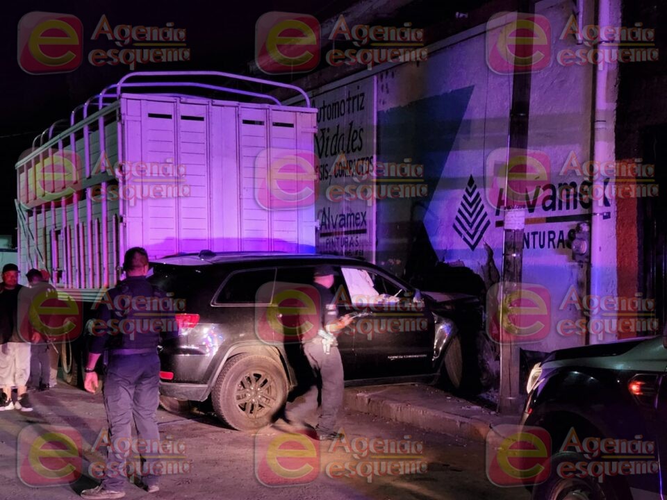 La unidad siniestrada es una Jeep color negro, la cual chocó de frente contra el inmueble, lugar a donde llegaron los elementos de Tránsito y Vialidad Municipal, quienes solicitaron una grúa para retirar la unidad que fue abandonada.