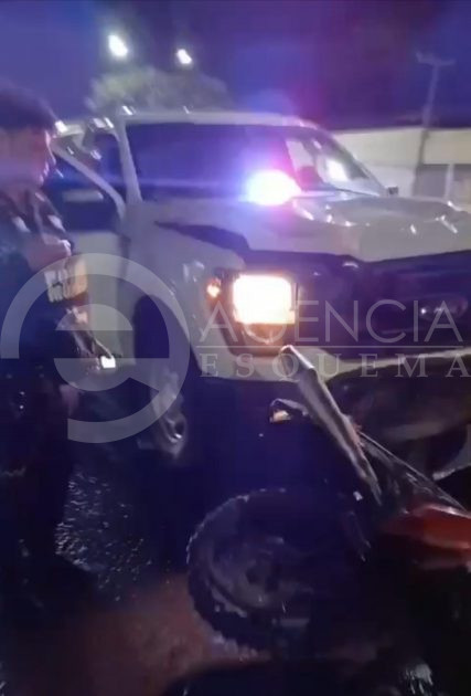 El accidente se registró en las últimas horas de este domingo, los vehículos involucrados son la camioneta Ford modelo F 150 doble cabina sin placas, la motocicleta marca Italika, modelo DM 150 y un vehículo de la marca Nissan modelo Versa color azul marino con placas de circulación