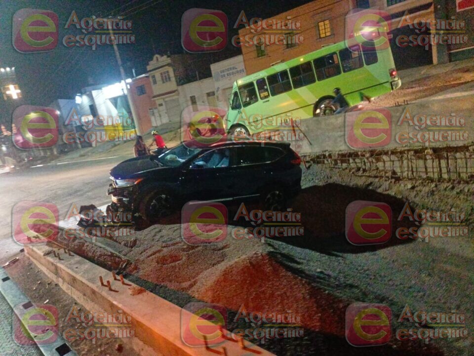 Morelia, Michoacán, 12 de junio de 2023.- La noche de este domingo una camioneta quedó atrapada sobre un montículo de arena y material de obra donde se lleva a cabo la construcción del puente y paso a desnivel de la salida a Salamanca, sobre la Avenida Morelos Norte.