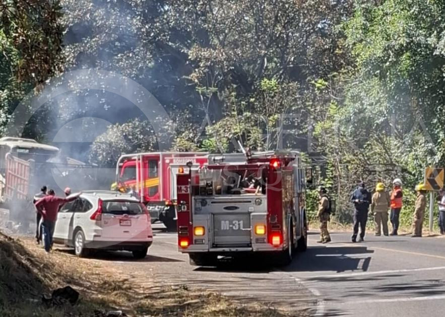 Al lugar se desplazaron Bomberos Voluntarios de Uruapan y Protección Civil Municipal, quienes trabajaron durante varios minutos para controlar las llamas, posteriormente, la unidad siniestrada fue retirada con una grúa.
