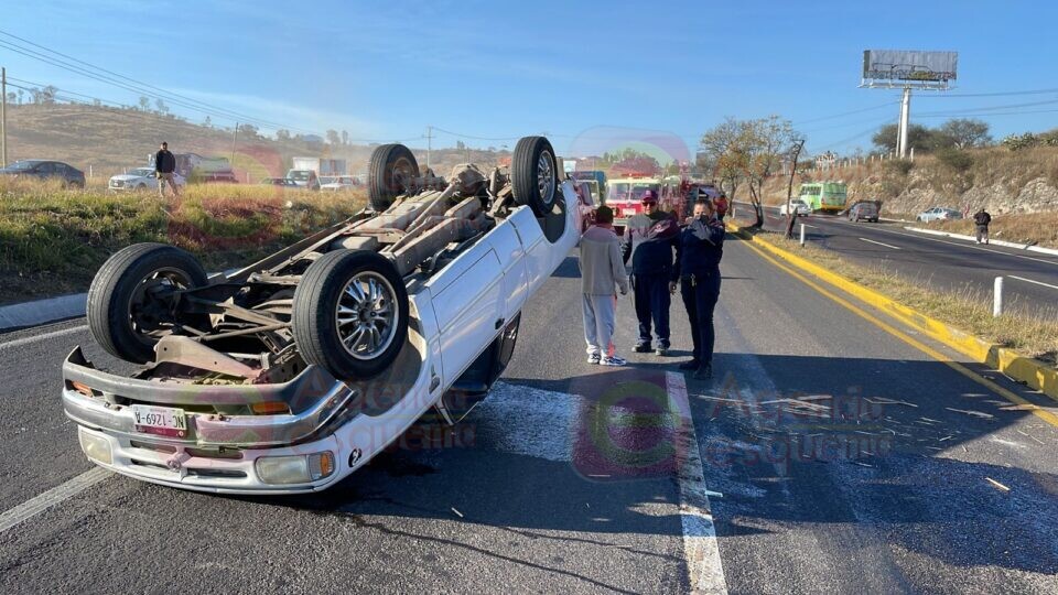 Una camioneta volcó esta mañana de sábado sobren la carretera Morelia – Cuitzeo, a unos metros de la desviación al municipio de Álvaro Obregón.