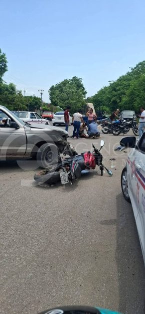Apatzingán, Michoacán, 5 de julio de 2025.- Este sábado una motocicleta y una camioneta se impactaron en la colonia Buenos Aires, hay un herido grave.