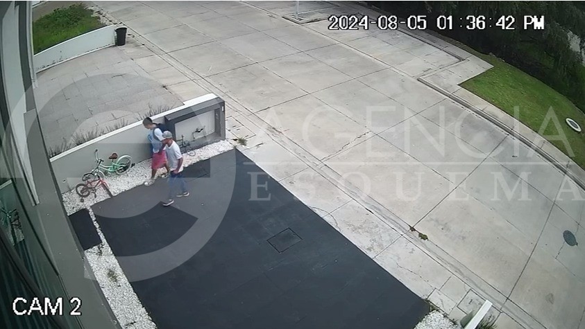 Morelia, Michoacán, 05 de agosto del 2024.-En los momentos en que dos sujetos se roban dos bicicletas de un domicilio del fraccionamiento Paseo del Parque, son captados por las cámaras de videograbación.