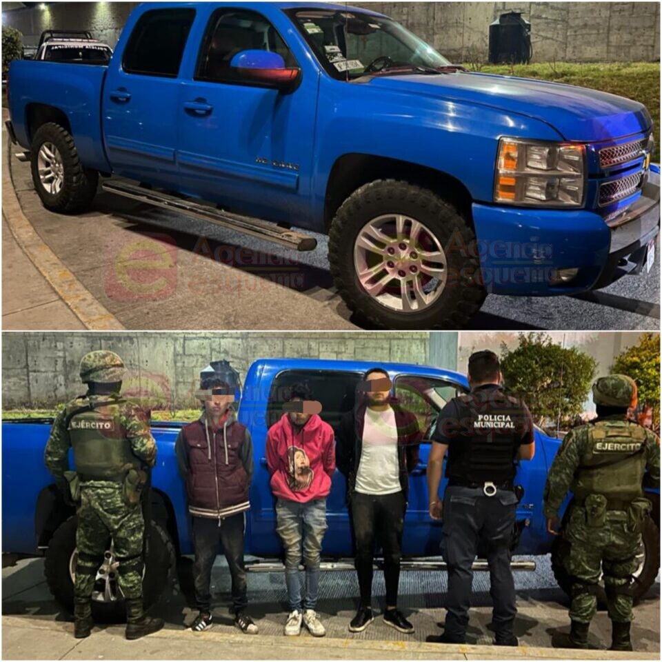 Una vez que los representantes de la ley recibieron el reporte, de inmediato se movilizaron coordinadamente con los militares, logrando encontrar a los tres individuos en los momentos en que pretendían escapar a bordo de la unidad robada.