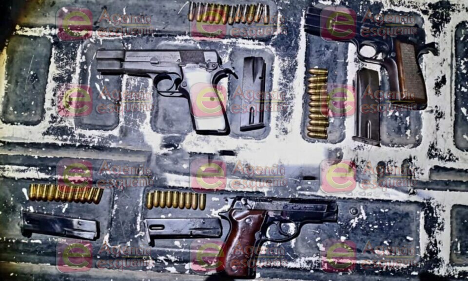 Dicha detección de Mauricio Jael B. M., de 18 años de edad, José Adrian E. B., de 18 y José Antonio B. C., de 43, a quienes les aseguraron dos Browing calibre 9 milímetros y una Pietro Beeetta calibre .380.