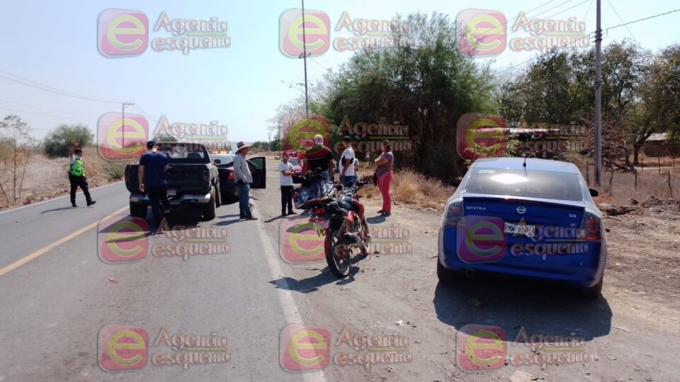 Apatzingán, Michoacán, 14 de marzo de 2023.- Una carambola de tres vehículos dejó cuantiosos daños materiales, sobre la carretera Apatzingán-Aguililla a altura del Aeropuerto de está ciudad.