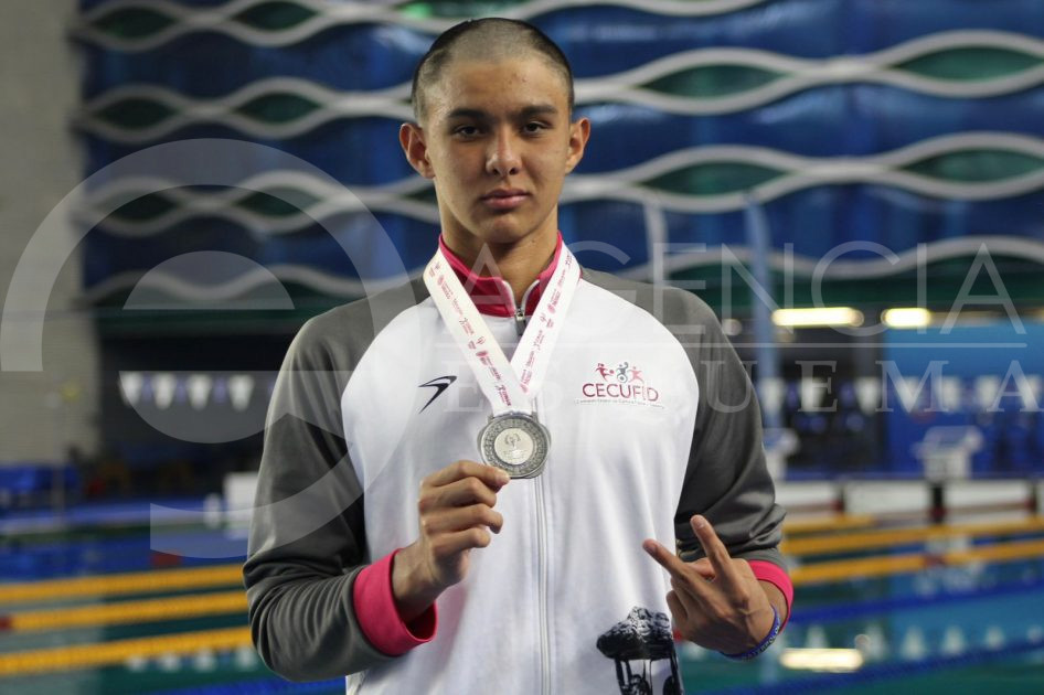 Se quedó con la medalla argenta tras realizar un tiempo de 1:02.35 en la alberca del Centro Acuático Metropolitano. El primer lugar fue para el hidrocálido Thiago Jiménez (59.90) y la tercera posición le perteneció al poblano Jorge Montiel (1:02.56).