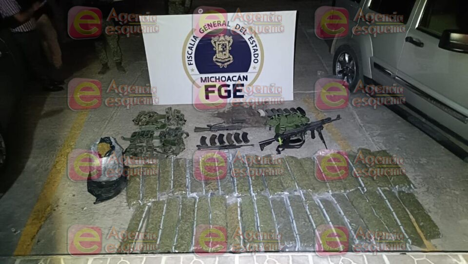 Apatzingán, Michoacán, 02 de mayo del 2024.– Un cateo en una “casa de seguridad” presuntamente utilizada por un grupo armado que opera en esta región de Tierra Caliente, permitió el aseguramiento de un vehículo con reporte de robo, armas, equipo táctico y droga.