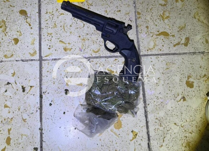 También, en la narco tiendita las autoridades confiscaron una pistola de diábolos, 1 báscula gramera, varias bolsas contiendo gramos de “cristal” y de mariguana.