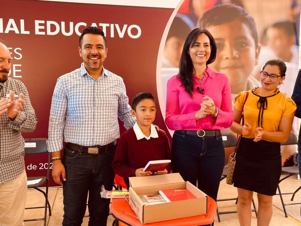 * El alcalde y la secretaria de Educación en el estado, Gabriela Molina, entregan material y equipamiento a 33 escuelas del municipio