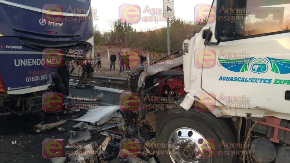 Las unidades implicadas fueron un tráiler de color blanco perteneciente a la empresa “Aguascalientes Express”, que impactó contra la parte trasera de un autobús morado con blanco, operado por la línea Futura.
