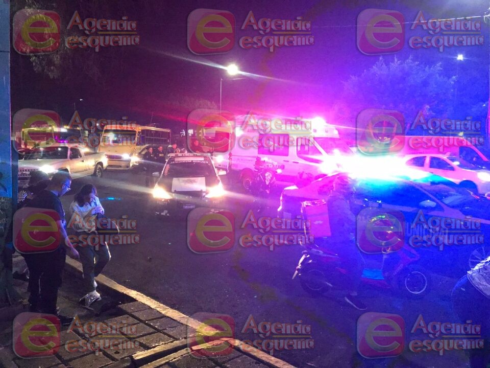 Morelia, Michoacán, 21 de marzo de 2023.- Dos motociclistas chocaron la noche de este martes en la calzada La Huerta y la avenida Solidaridad, una de las víctimas fue llevada a un hospital para su atención médica.