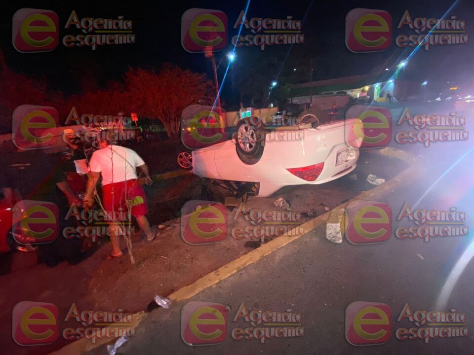 Debido al impacto, el vehículo Honda terminó volcado y cuando llegaron los servicios de emergencia atendieron a los lesionados, uno de estos se negó para ser canalizado a un hospital para su atencion médica.
