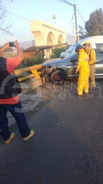 Al respecto se supo que esta mañana, se reportó la colisión sobre el puente del Dren Barajas, a unos metros del acceso al Antiguo Camino a La Huerta, donde impactaron una Combi de la Ruta Gris con número económico 109 y un Volkswagen Jetta de color gris, con placas LWE-170-A.