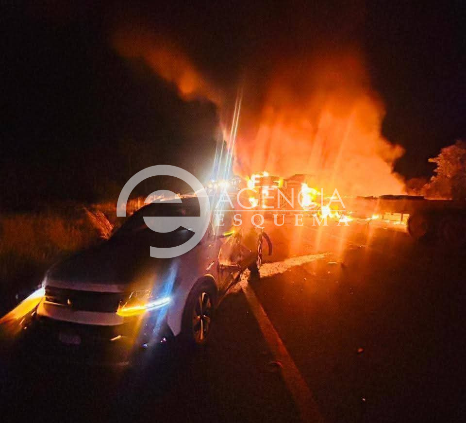 Lázaro Cárdenas, Michoacán, 29 de noviembre de 2025.– Un muerto y tres mujeres lesionadas dejó el choque de un tractocamión doble remolque contra un vehículo particular que después se incendió la madrugada de este sábado sobre la autopista Siglo XXI, la madrugada de este sábado.