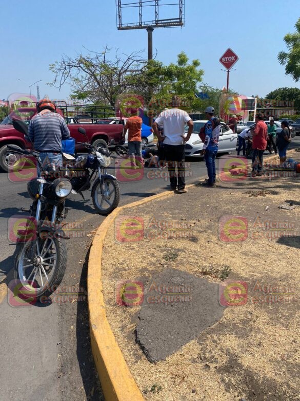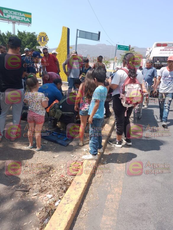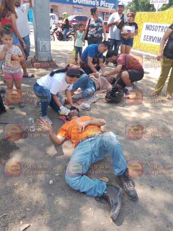 Apatzingán, Michoacán, 3 de abril del 2023.-Dos personas resultaron gravemente heridos al chocar su motocicleta contra una camioneta. El hecho se registró la tarde de este lunes, sobre la Avenida 5 de Mayo esquina con la Avenida Francisco I.Madero de la colonia 18 de Marzo cercas de la bodega Aurrerá.