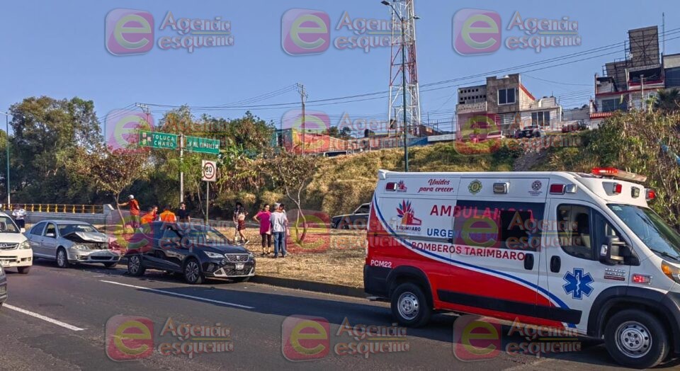 Morelia, Michoacán, 13 de abril de 2023.- Un choque por alcance de dos vehículos, dejó como saldo al menos cuatro personas lesionadas y daños materiales por varios miles de pesos.