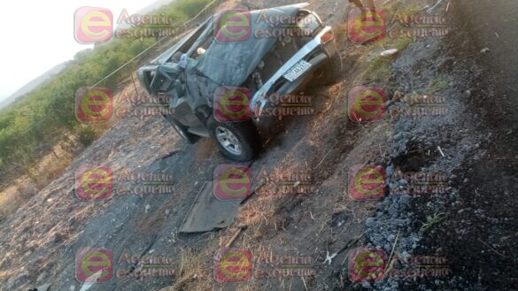 Apatzingán, Michoacán, 7 de junio de 2023.-Una pareja resultó gravemente herida al volcar en su vehículo y ser expulsados de la misma. El hecho se registró la tarde de este miércoles alrededor de las 19:03 horas, sobre la carretera Apatzingán-Aguililla a la altura de la población de Los Hornos perteneciente a este municipio; los ahora heridos se transportaban en una camioneta de la marca Toyota, tipo Runner, color verde, placas UDC-46281, la cual quedó completamente destrozada al volcar, esto al conducir en exceso de velocidad.