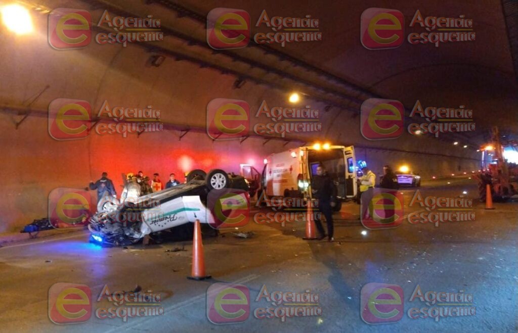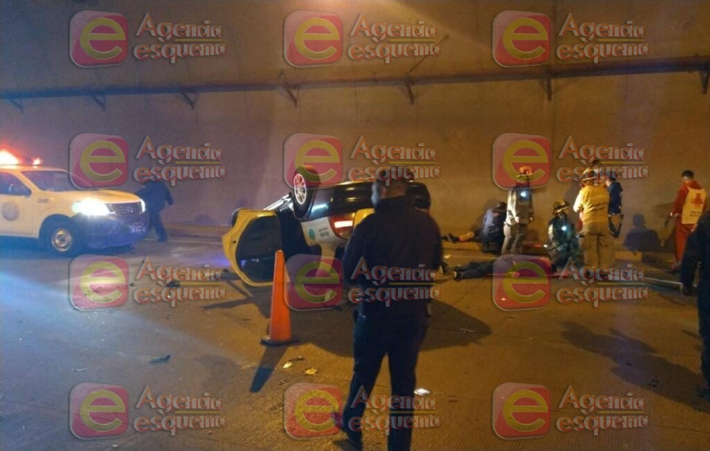 Después del impacto, el taxi volcó y sus dos ocupantes sufrieron serias lesiones que le costaron la vida a uno de ellos y otro fue canalizado a un hospital para su atención médica.