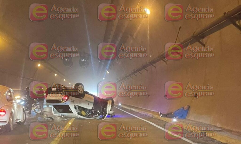 Se informó que el vehículo del servicio de taxi de la línea ‘Premier’ chocó contra una máquina que al parecer circulaba por el túnel sin los debidos señalamientos.