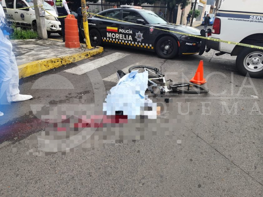 Morelia, Michoacán, 17 de julio de 2025.- La mañana de este jueves un ciclista de 18 años de edad fue arrollado por un vehículo en el cruce de la avenida Lázaro Cárdenas con la calle Francisco Márquez.