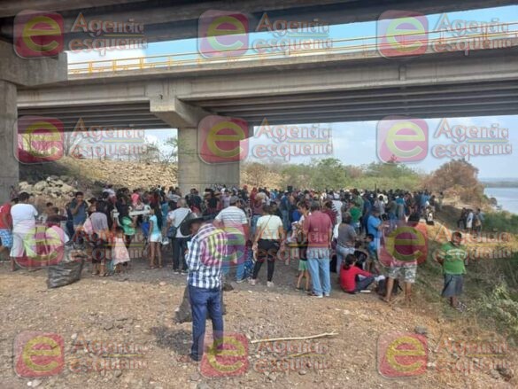 Lázaro Cárdenas, 21 de mayo de 2023.- Cientos de personas a quienes se les ha prometido un terreno gratuito para vivienda bloquean la autopista Siglo XXI a la altura de los puentes «Ignacio Chávez» a unos 5 kilómetros de Ciudad Lázaro Cárdenas, se encontraban en «asamblea» bajo los puentes mientras que sus vehículos los dejaban estacionados arriba de los puentes en el acotamiento de la autopista.