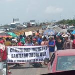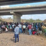 Lázaro Cárdenas, 21 de mayo de 2023.- Cientos de personas a quienes se les ha prometido un terreno gratuito para vivienda bloquean la autopista Siglo XXI a la altura de los puentes «Ignacio Chávez» a unos 5 kilómetros de Ciudad Lázaro Cárdenas, se encontraban en «asamblea» bajo los puentes mientras que sus vehículos los dejaban estacionados arriba de los puentes en el acotamiento de la autopista.
