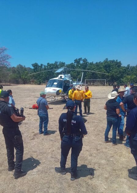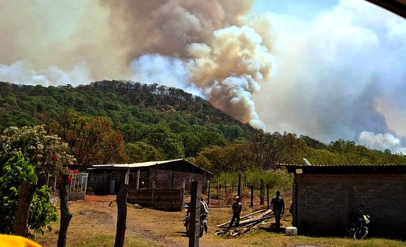 Además del combate aéreo, en tierra, se trata de controlar por dos flancos, por La Cebadilla y otro, por Tepenahua. No hay riesgo de afectación a los habitantes de dichos ejidos, pero han sido alertados de los riesgos, por el intenso calor y cambio brusco de los vientos.