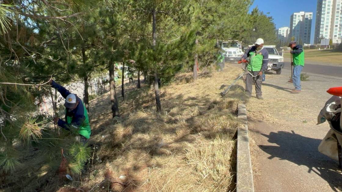 Con brigadas de la Dirección de Parques y Jardines, y de la Dirección de Residuos Sólidos, se realizó la poda de pasto y retiro de residuos de los camellones ubicados en Avenida Montaña Monarca, a la altura del Fraccionamiento Lartesi, y sobre la Av. Michuacan, en la colonia Vista Bella.