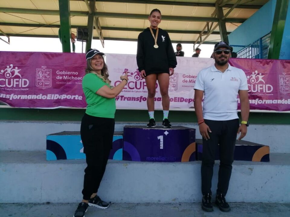 Morelia, Michoacán; 19 de febrero de 2023.- Con buen sabor de boca, concluyó este día el Selectivo Estatal de Atletismo, con miras a la fase macro regional de los Juegos Nacionales CONADE 2023, en las instalaciones del Complejo Deportivo Bicentenario, en el cual estuvo presente la directora del Instituto Municipal de Cultura Física y Deporte (Imcufide).