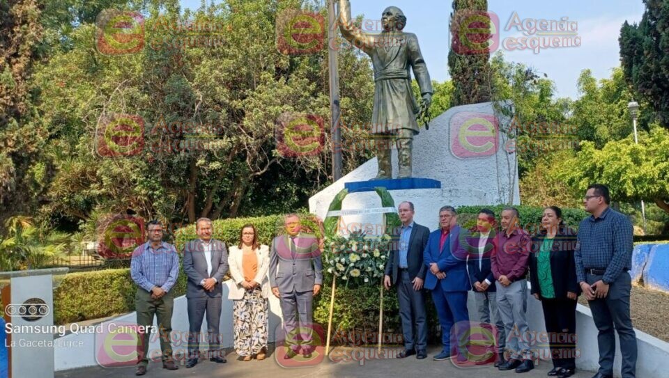 Uruapan, Michoacán, 8 de mayo de 2024.- Funcionarios municipales y autoridades universitarias, conmemoraron el 271 aniversario del ex rector de la Máxima Casa de Estudios, Miguel Hidalgo; colocaron ofrendas florales y montaron guardia de honor, ante el monumento erigido en su honor, en la Escuela Preparatoria “Lic. Eduardo Ruiz”.